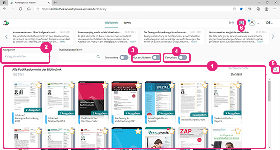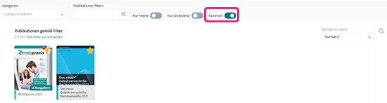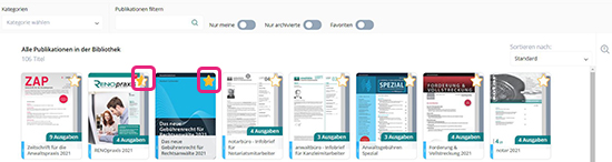 Favoriten speichern Sie, in dem Sie eine Publikation mit dem Stern markieren.